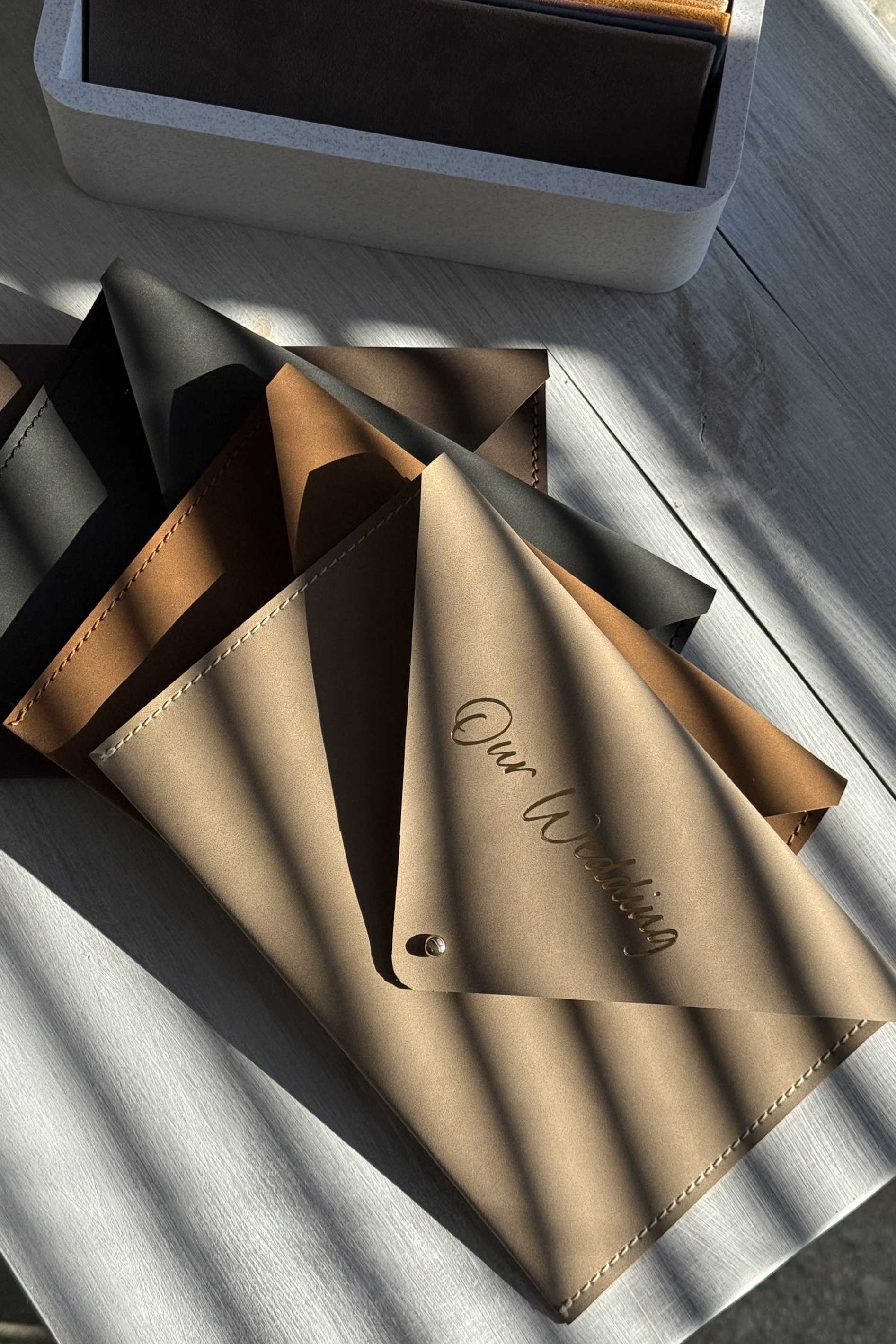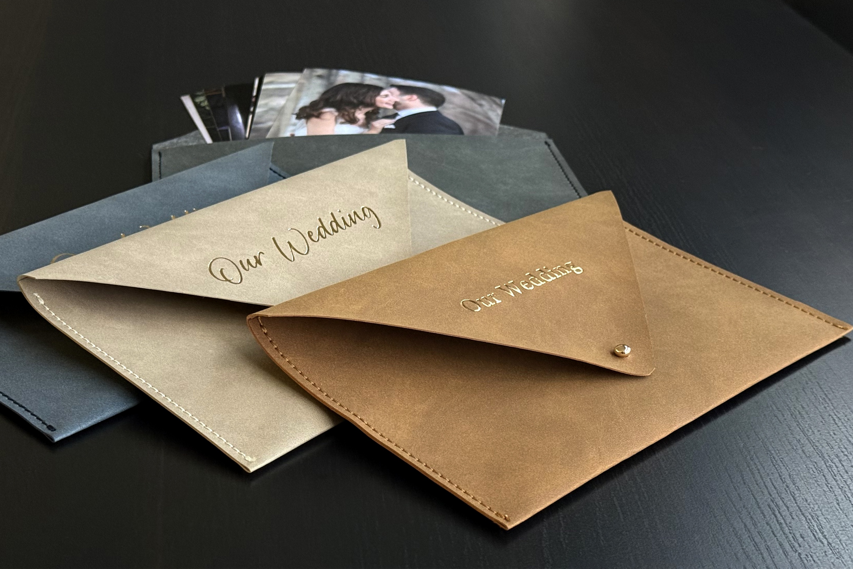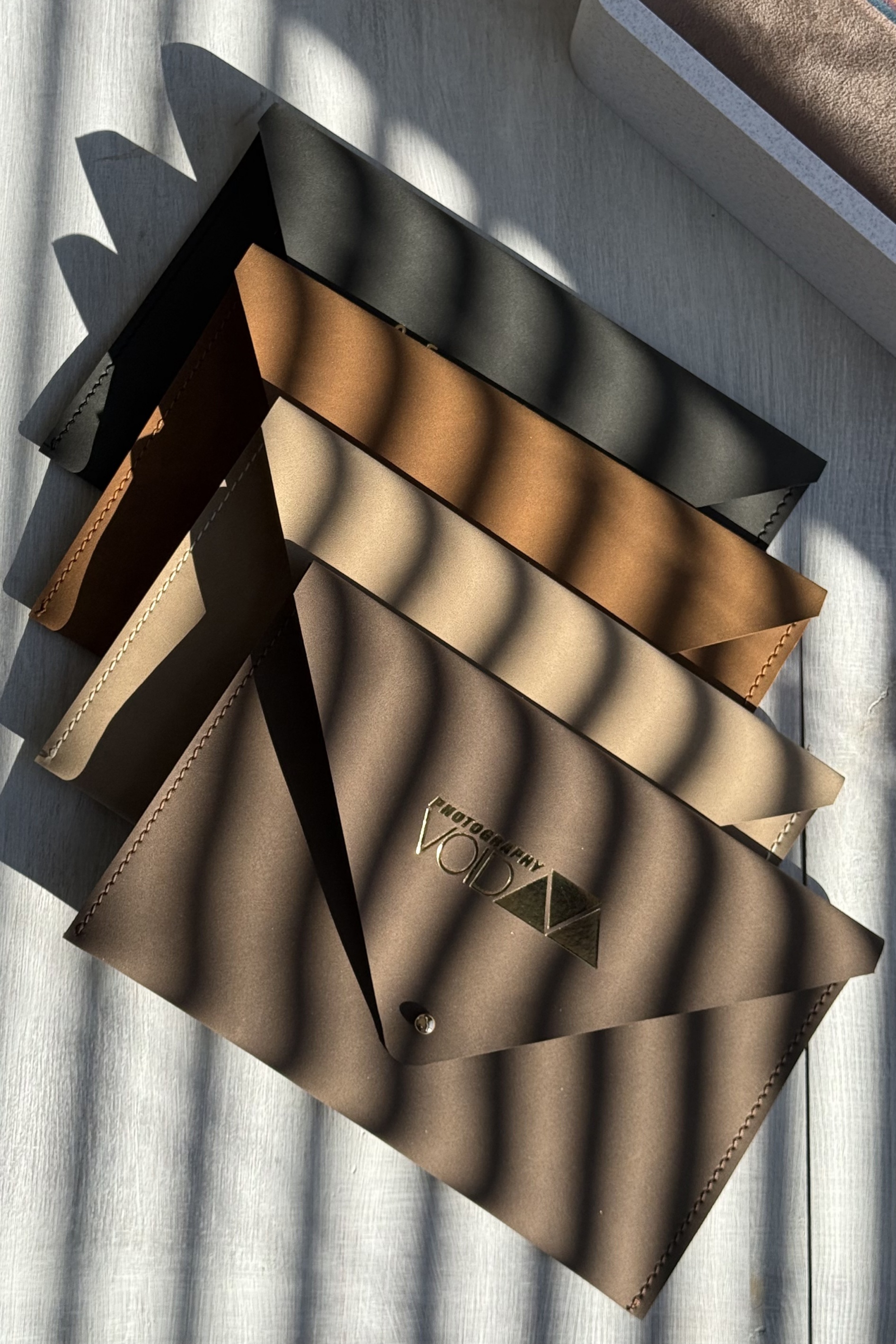 Οι Premium Photo Envelopes αποτελούν την απόλυτη πρόταση για μια ολοκληρωμένη και κομψή παράδοση, μετατρέποντας την απλή παρουσίαση φωτογραφιών σε μια μοναδική εμπειρία αφής και αισθητικής. Διαθέσιμοι σε οκτώ προσεκτικά επιλεγμένες αποχρώσεις, οι φάκελοι αυτοί προσαρμόζονται στις διαστάσεις των φωτογραφιών σας, εξασφαλίζοντας προστασία και εφαρμογή. Η δυνατότητα προσωποποίησης μέσω Foil ή Embossing. προσδίδει έναν αέρα αποκλειστικότητας, αναδεικνύοντας την εταιρική ταυτότητα του δημιουργού και προσφέροντας στον κάτοχο ένα χειροποίητο κειμήλιο που αναβαθμίζει την αξία των αναμνήσεών του. Πρόκειται για μια εκλεπτυσμένη λεπτομέρεια που συνδυάζει την ανθεκτικότητα των premium υλικών με την ιεροτελεστία μιας ιδιαίτερης αποκάλυψης.